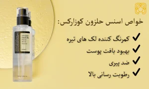 اسنس حلزون کوزارکس اصل یک محصول محبوب و ترند این روز ها است که با بافت سبک و زود جذب، درخشش طبیعی به چهره میدهد و سلامت پوست را به همراه دارد. این محصول سرشار از موسین حلزون است که پوست را عمیقا تغذیه کرده و آن را در تمام طول روز، مرطوب و درخشان میکند و از این حیث با انواع آبرسان کلینیک نیز در رقابت است. سرم اسنس حلزون کوزارکس، علاوه بر رطوبترسانی و آبرسانی عمقی، به بهبود بافت پوست و کاهش لکها کمک چشمگیری میکند. از دیگر خواص اسنس کوزارکس، رفع زبری و کدری پوست، بهبود اسکار و حساسیتهای پوستی است. سرم آبرسان کوزارکس با رطوبت رسانی و تغذیهکنندگی عمقی، خطوط و چروکهای پوستی را کاهش میدهد.
